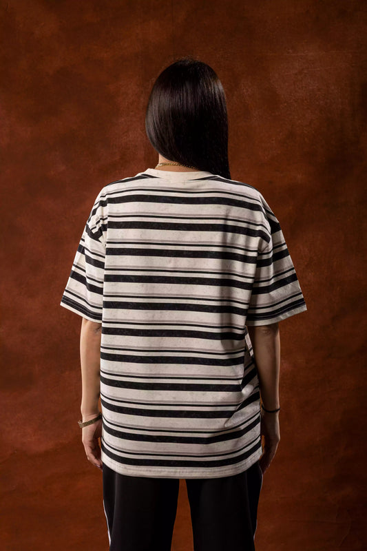Vendor:MARBLEWhite stripped relaxed fit T-shirt