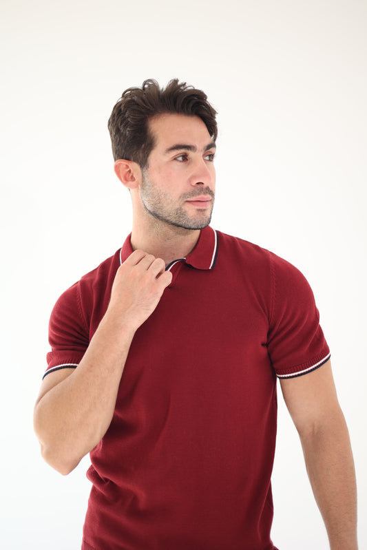 Vendor:MARBLEMaroon Contrast Trim Knit Polo
