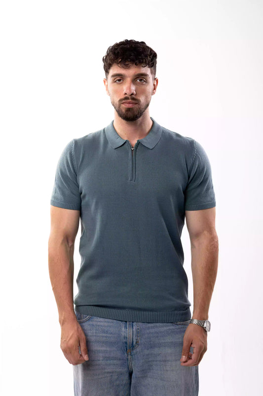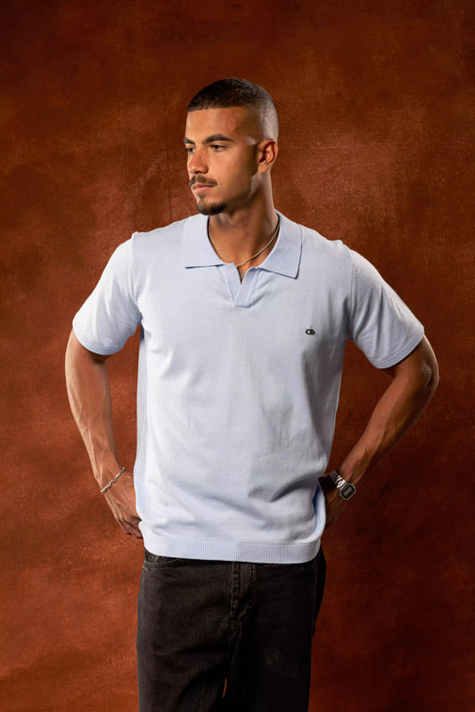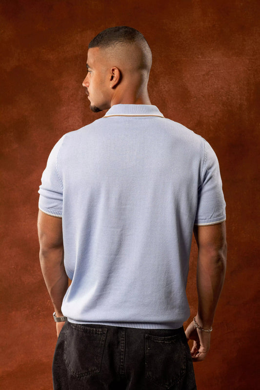 Vendor:MARBLEPlain Sky Blue Knitted Polo