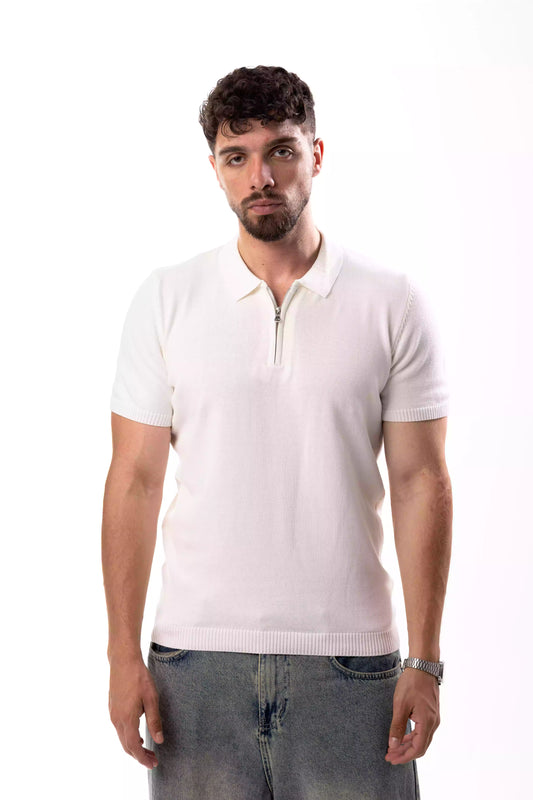 Vendor:MARBLEOff-white Zipped Knit Polo