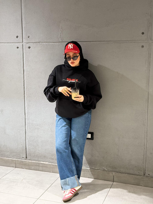 Black “Believe in Yourself” Embroidered Oversized Hoodie