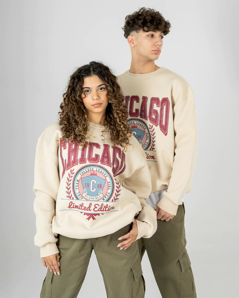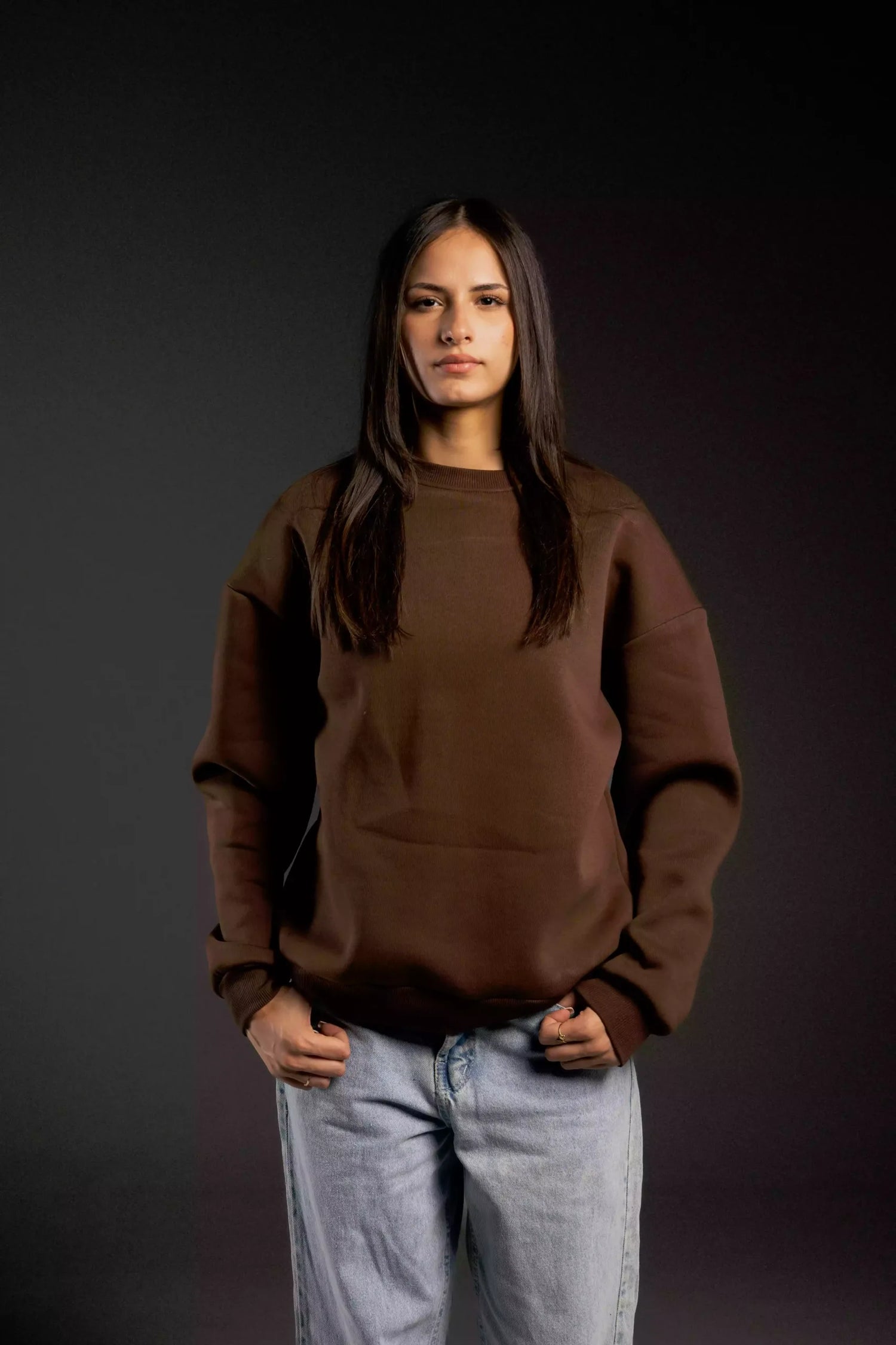 Oversized sweatshirt fabric made from a cotton blend with a soft brushed inside, dropped shoulders, long sleeves.