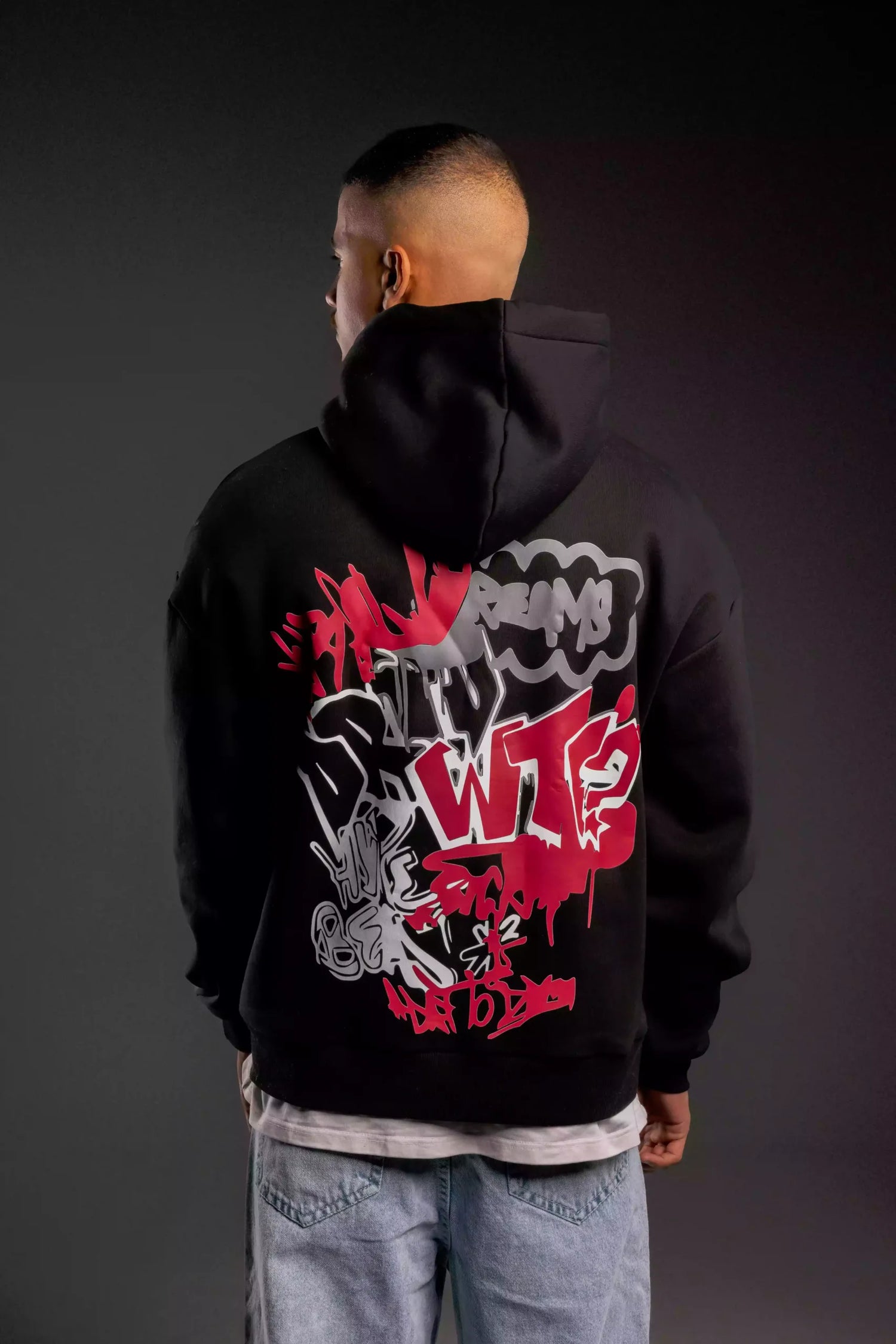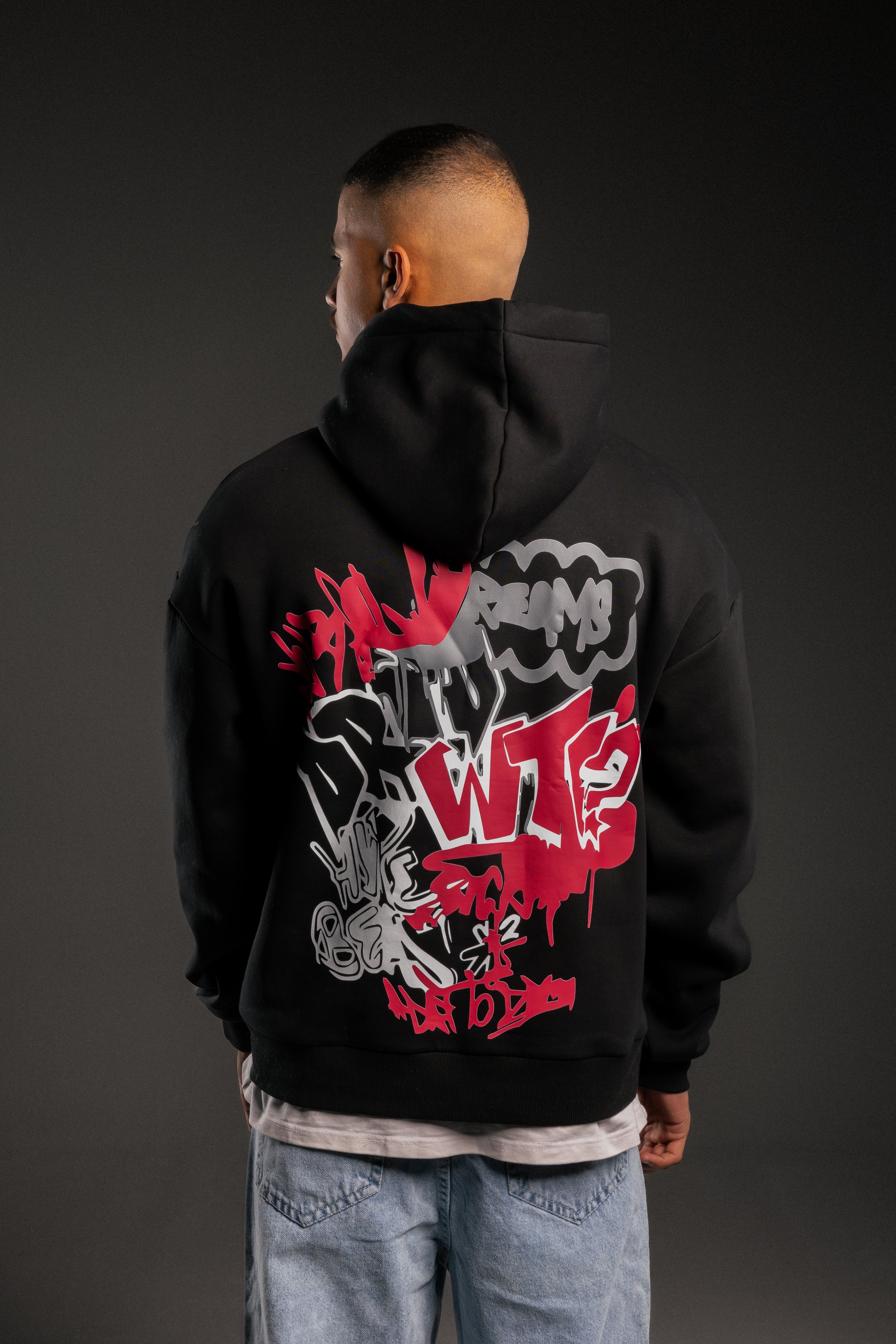 Oversized hoodie in sweatshirt fabric made from a cotton blend with a soft brushed inside. Lined hood with a wrap over front, dropped shoulders, long sleeves, a kangaroo pocket.