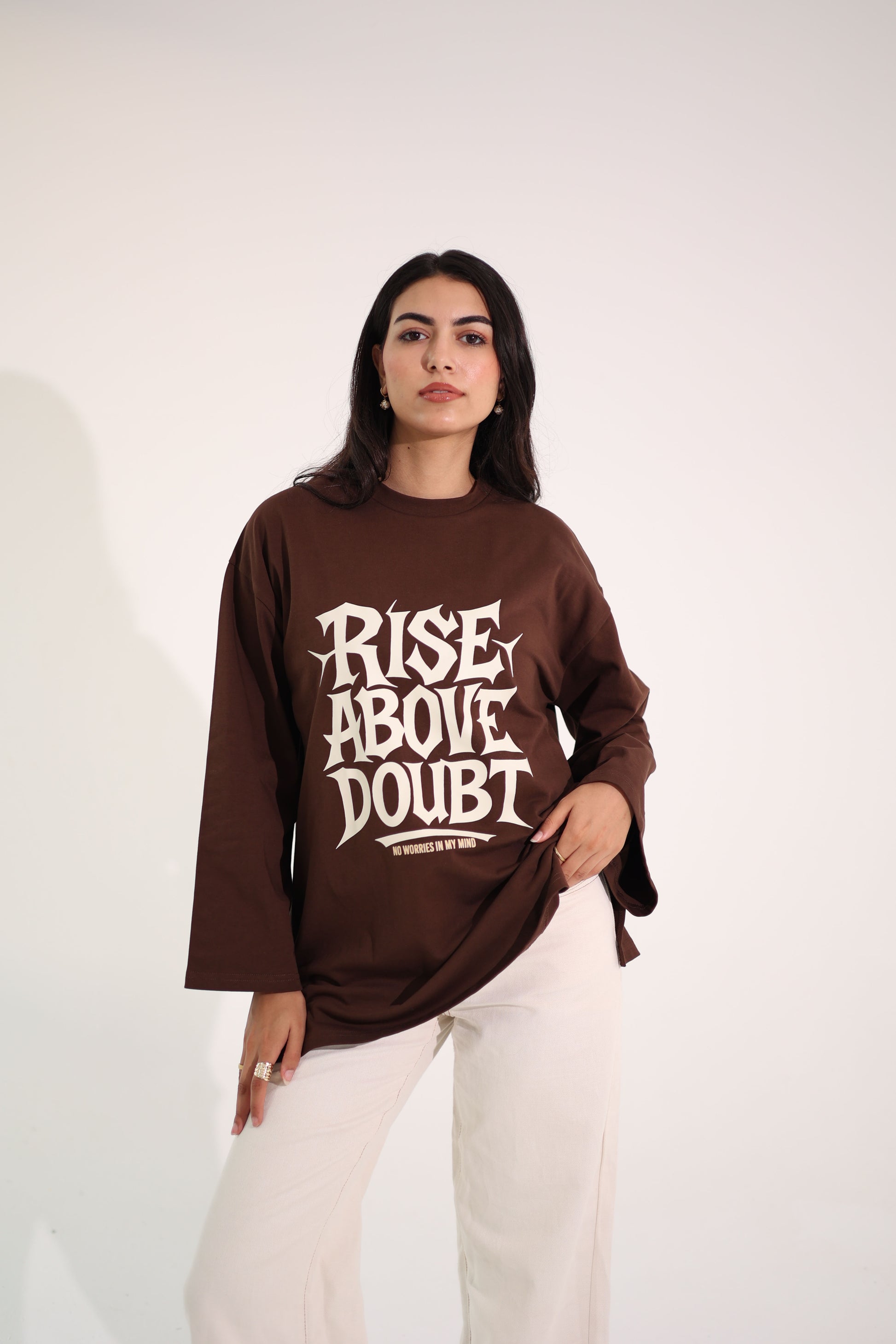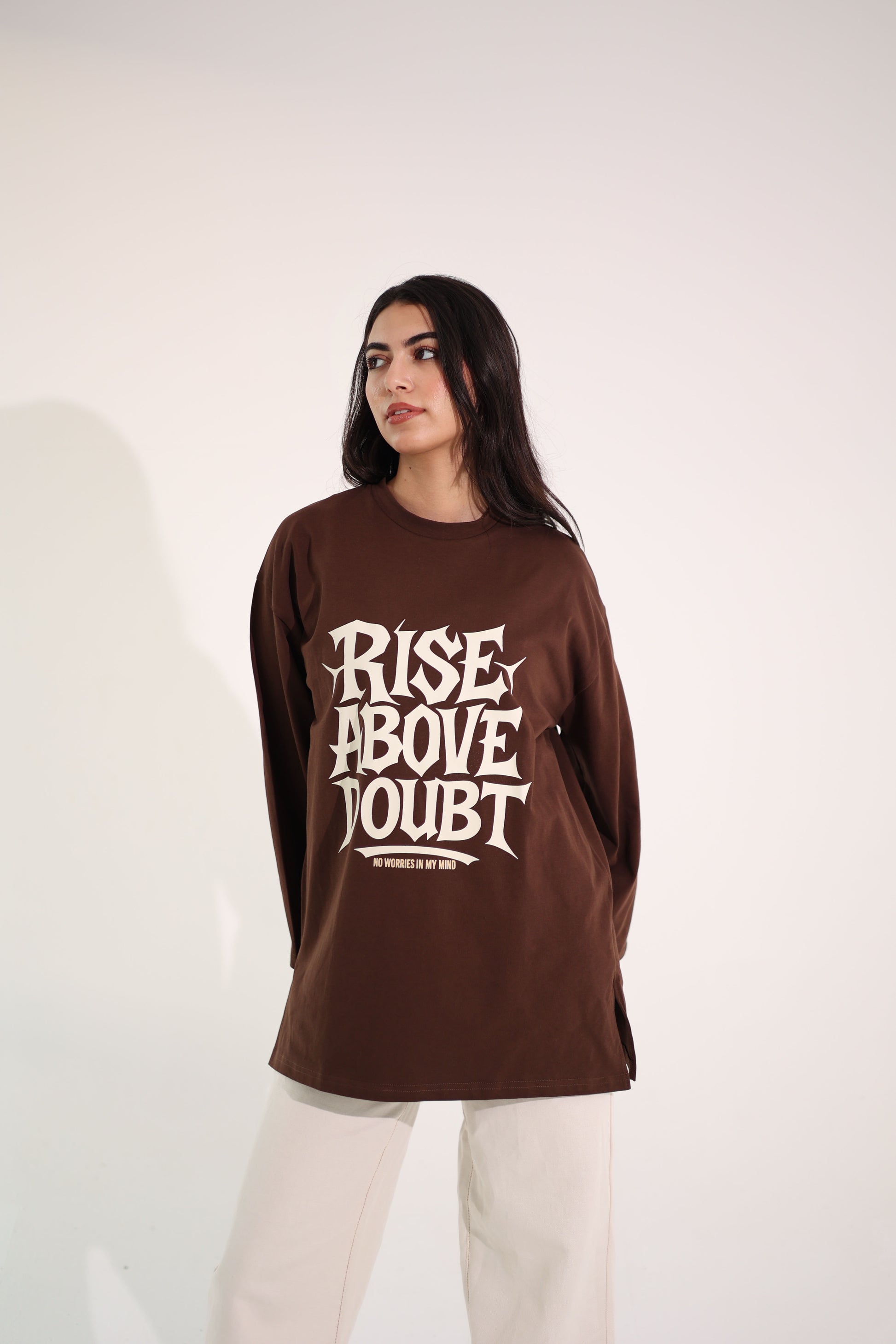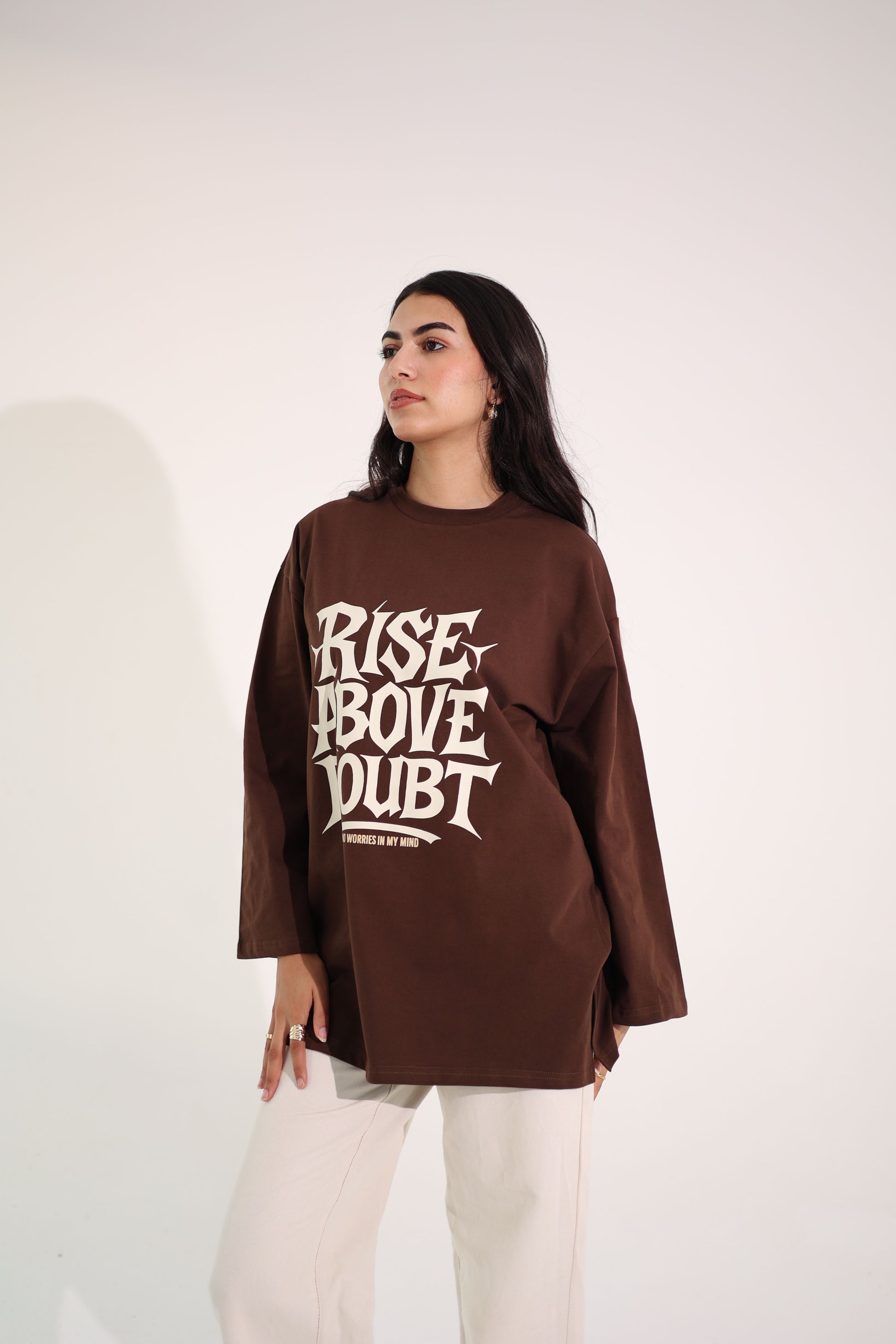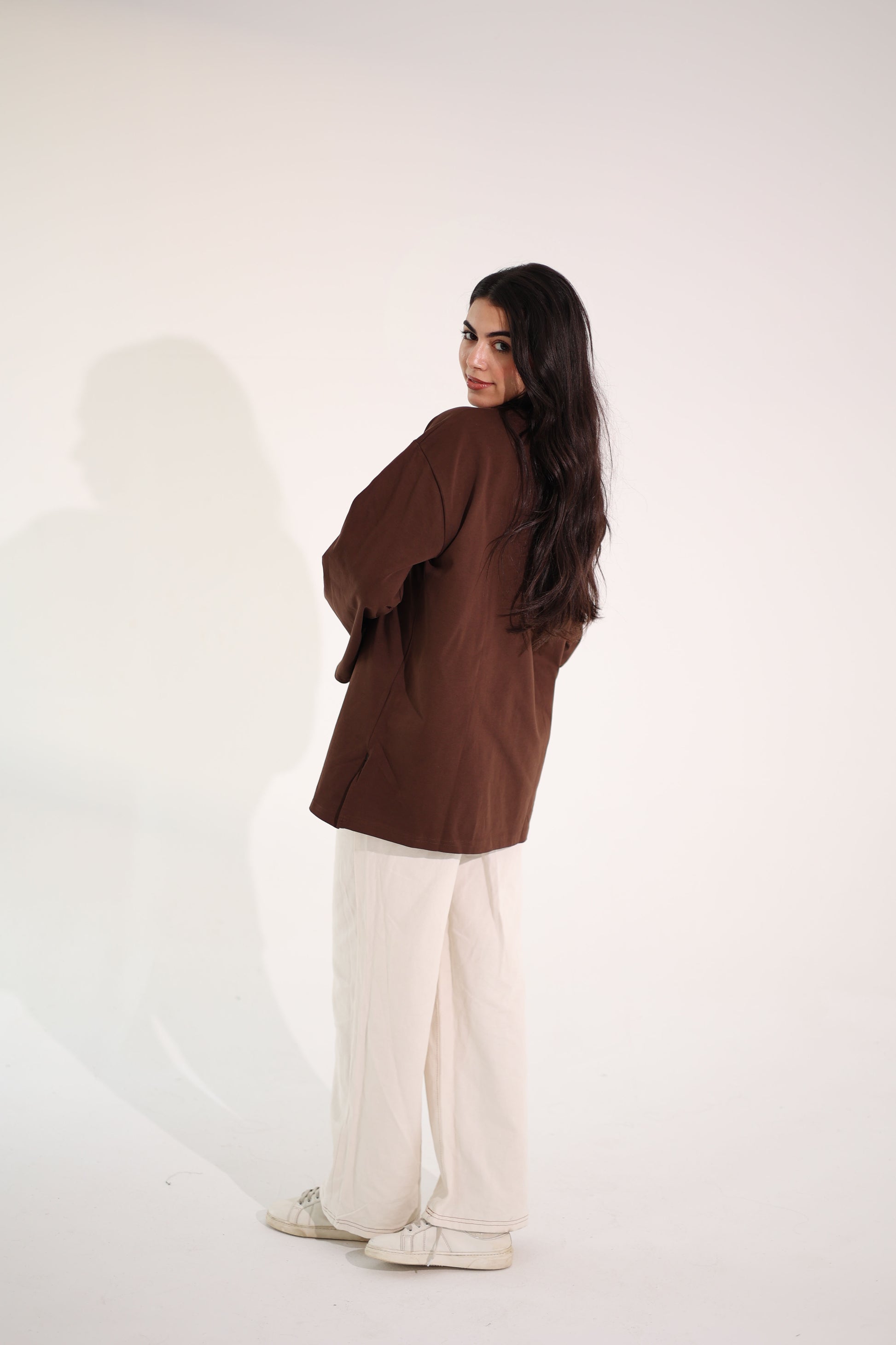 Printed Brown long sleeves oversized t-shirt 100% cotton