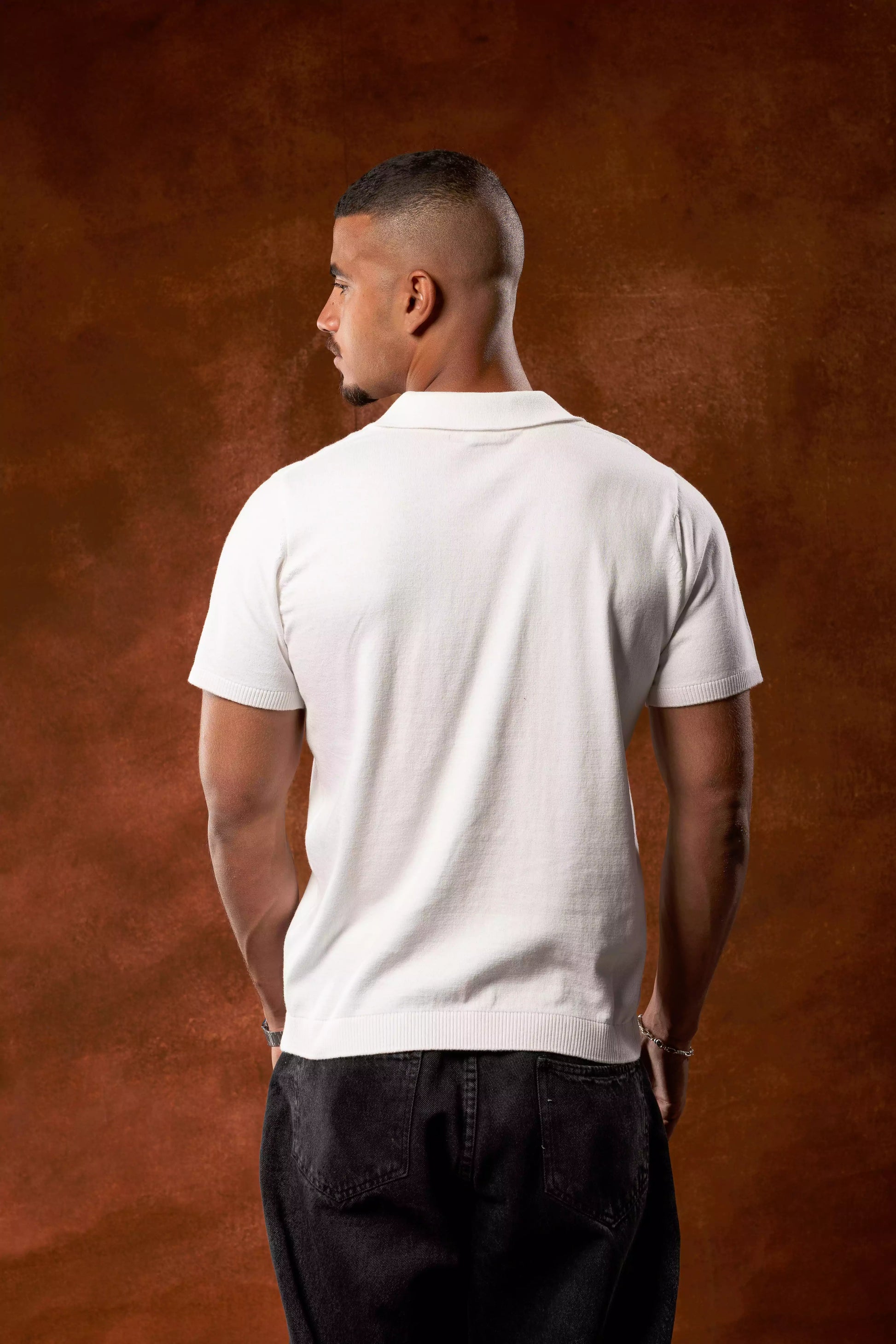 Plain Off White Knitted Polo