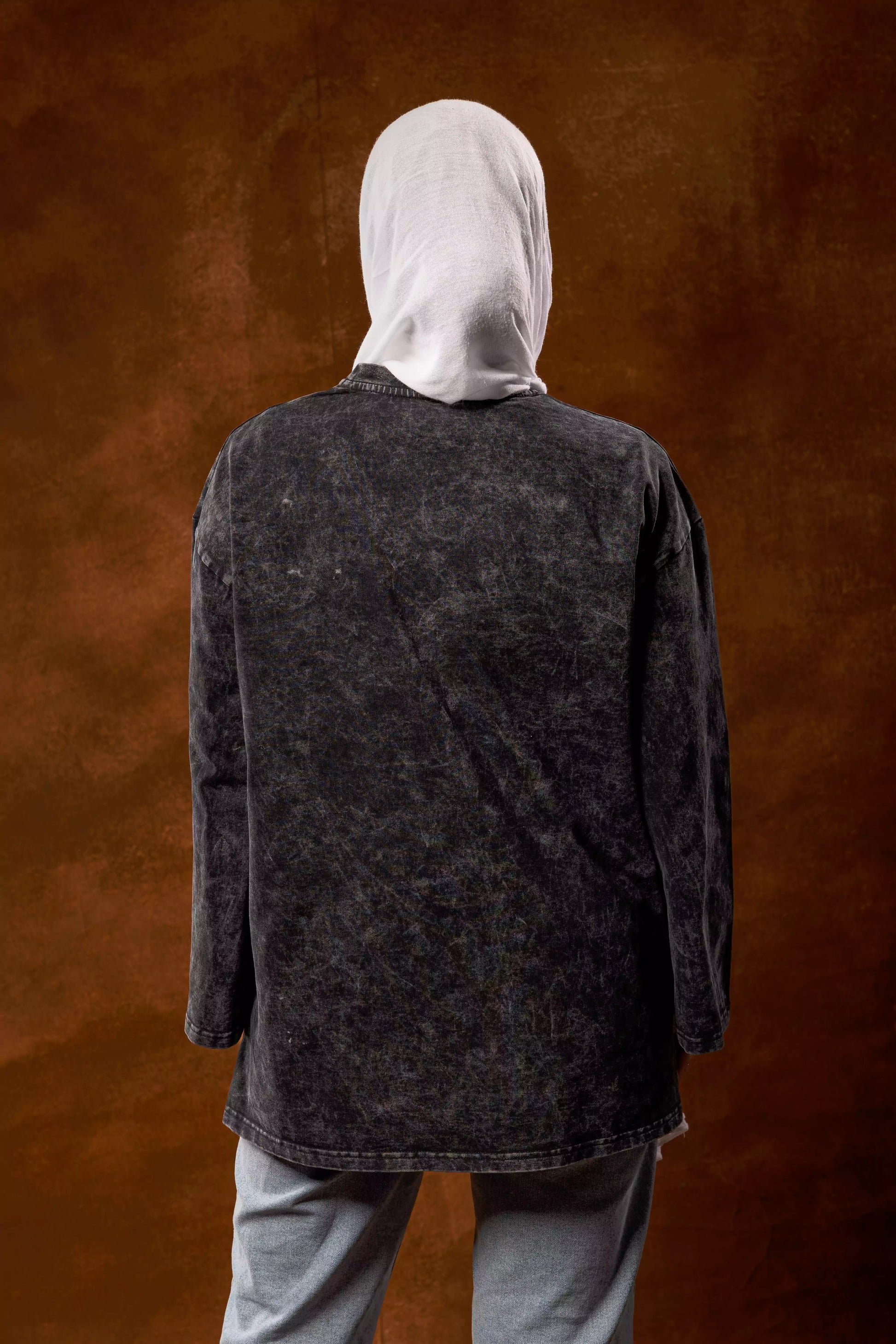 Plain Acid washed grey long sleeves oversized t-shirt 100% cotton