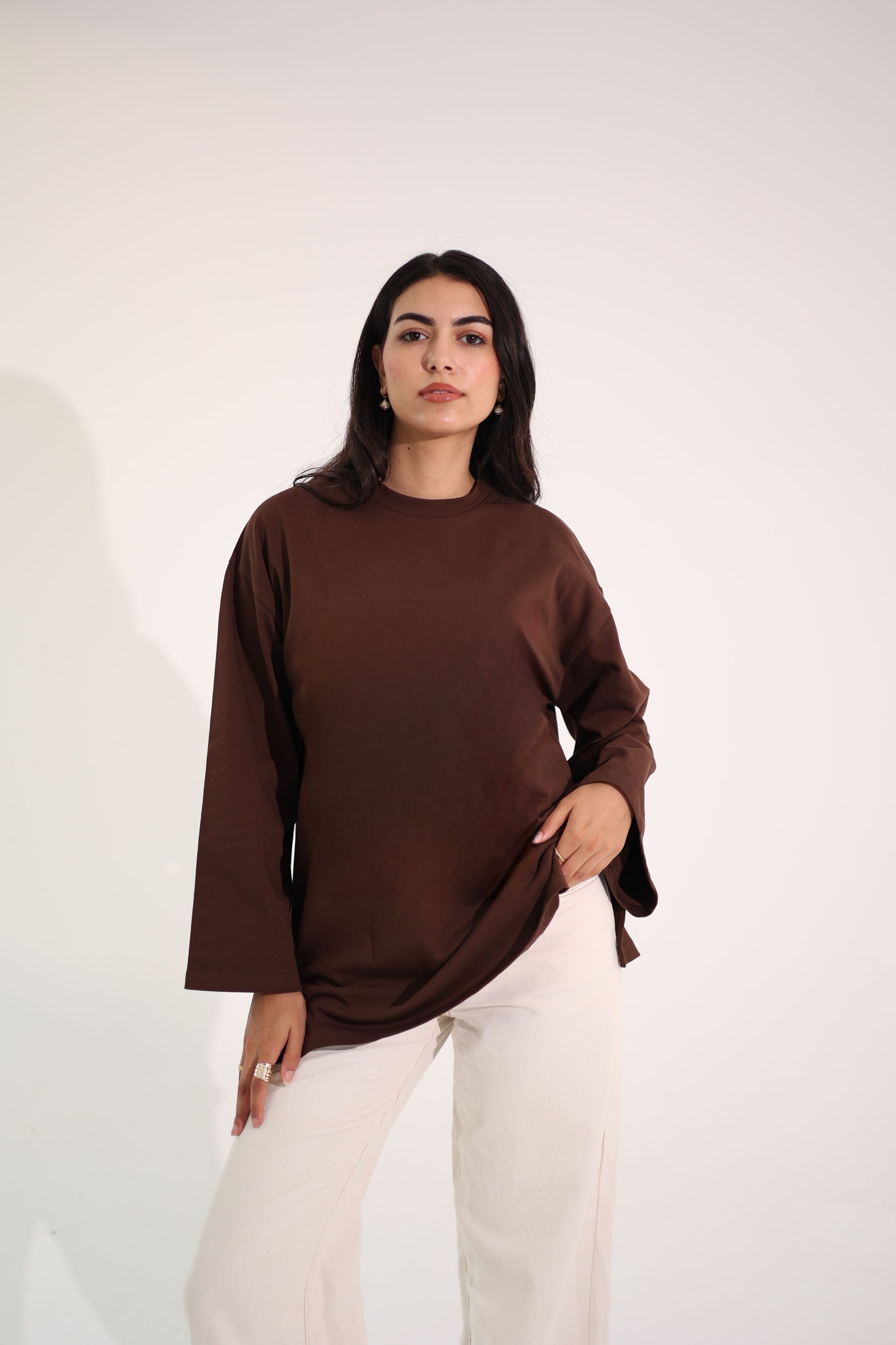 Plain Brown long sleeves oversized t-shirt 100% cotton