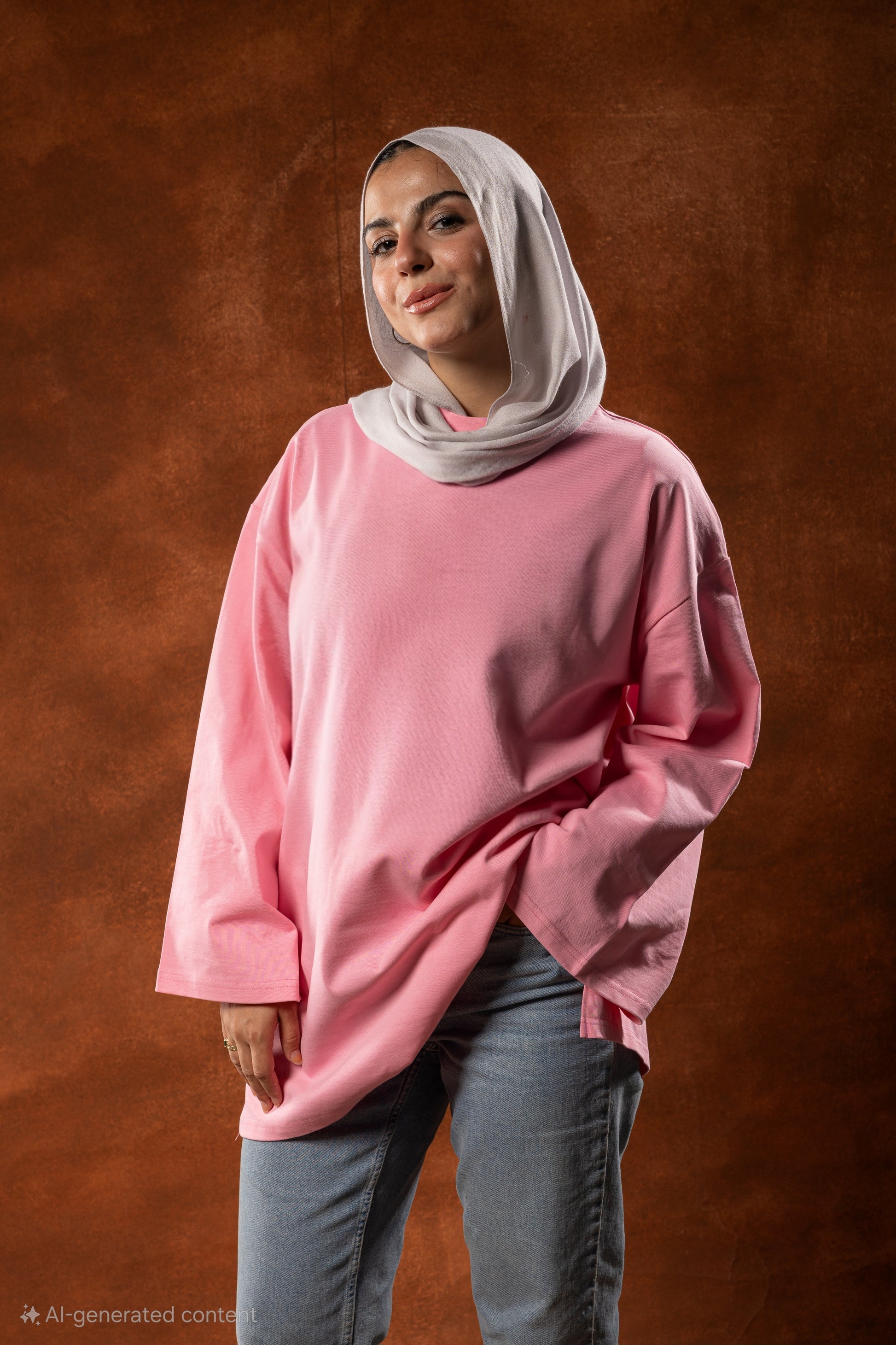 Plain Pink long sleeves oversized t-shirt 100% cotton