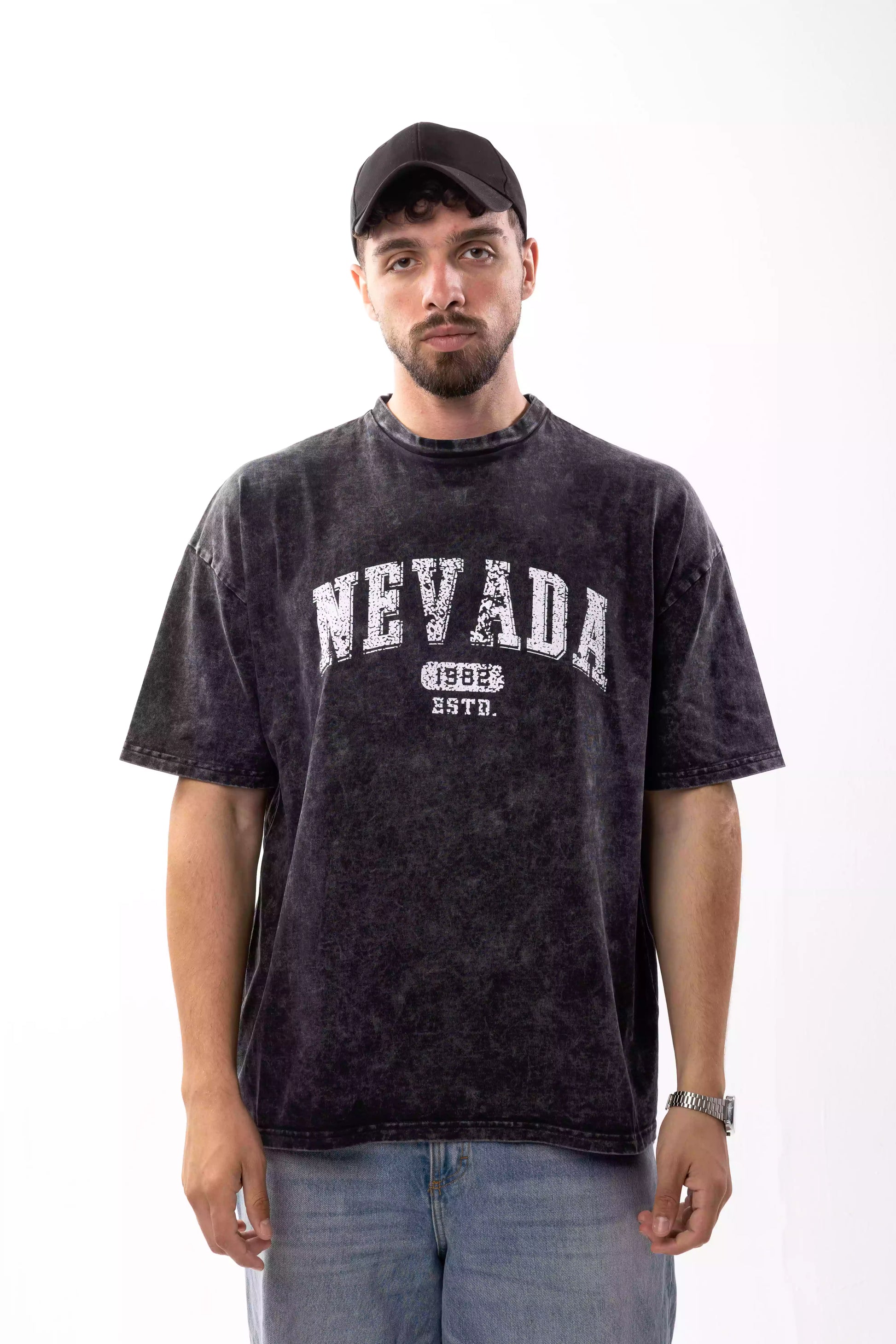 Printed Acid washed grey oversized t-shirt 100% cotton