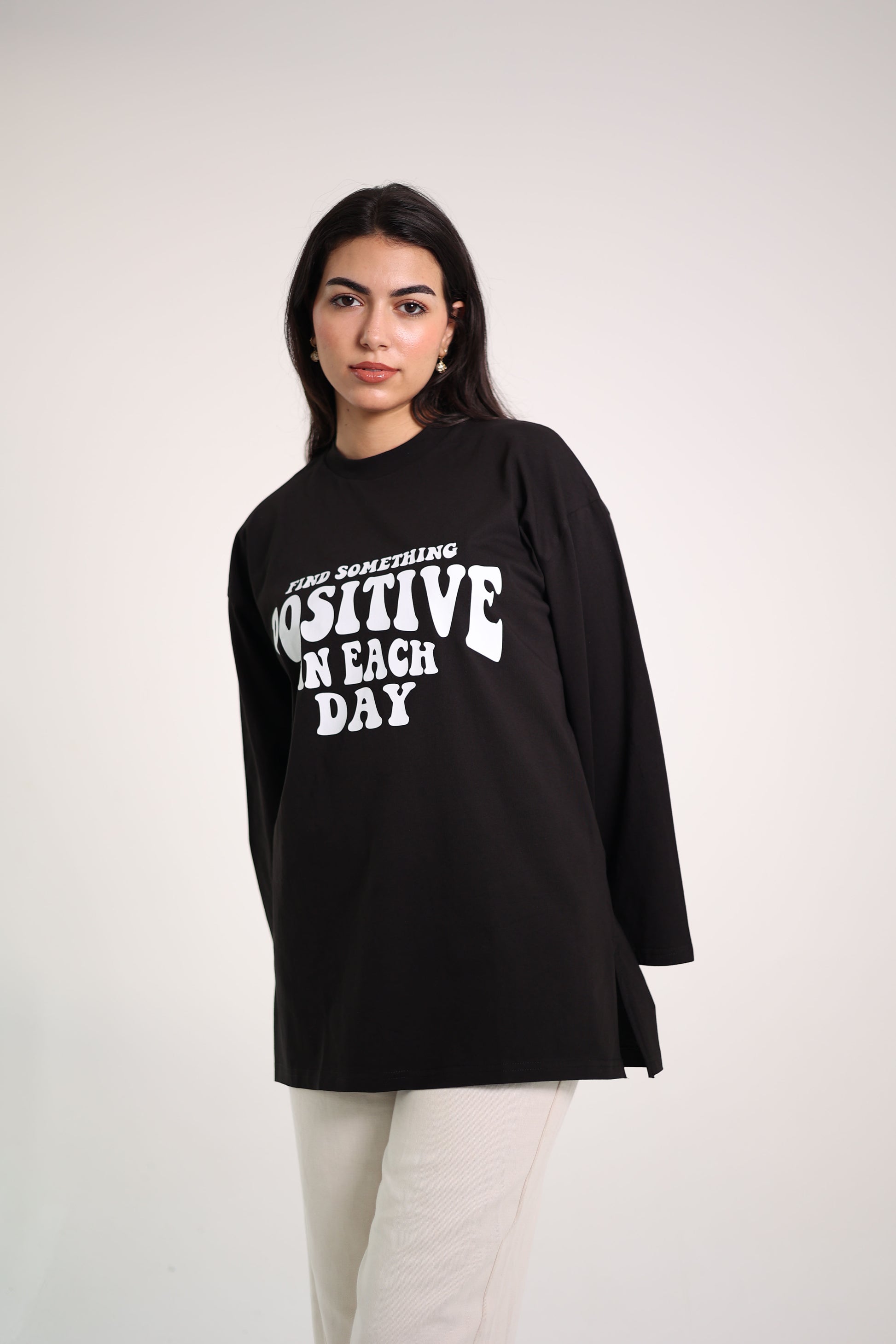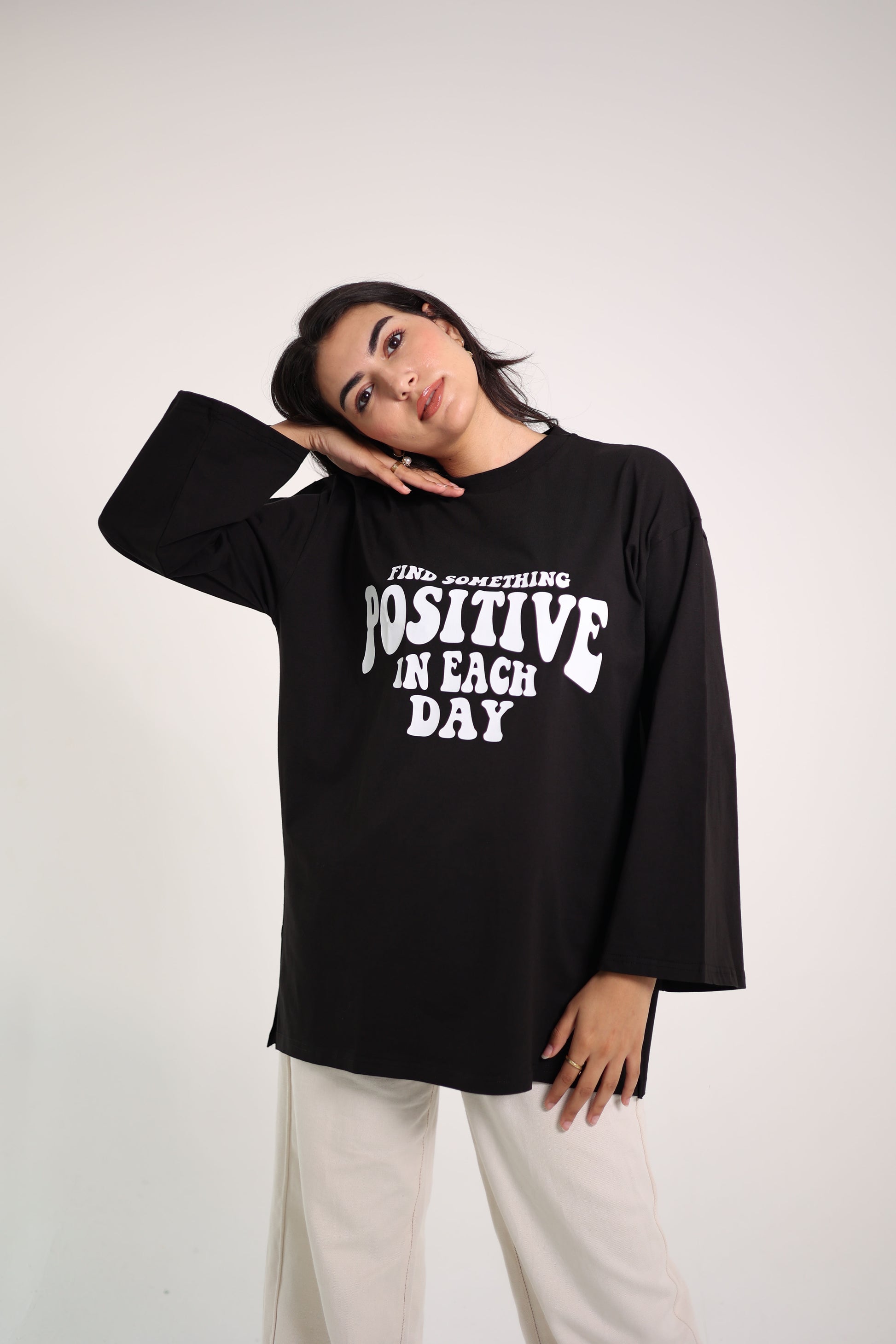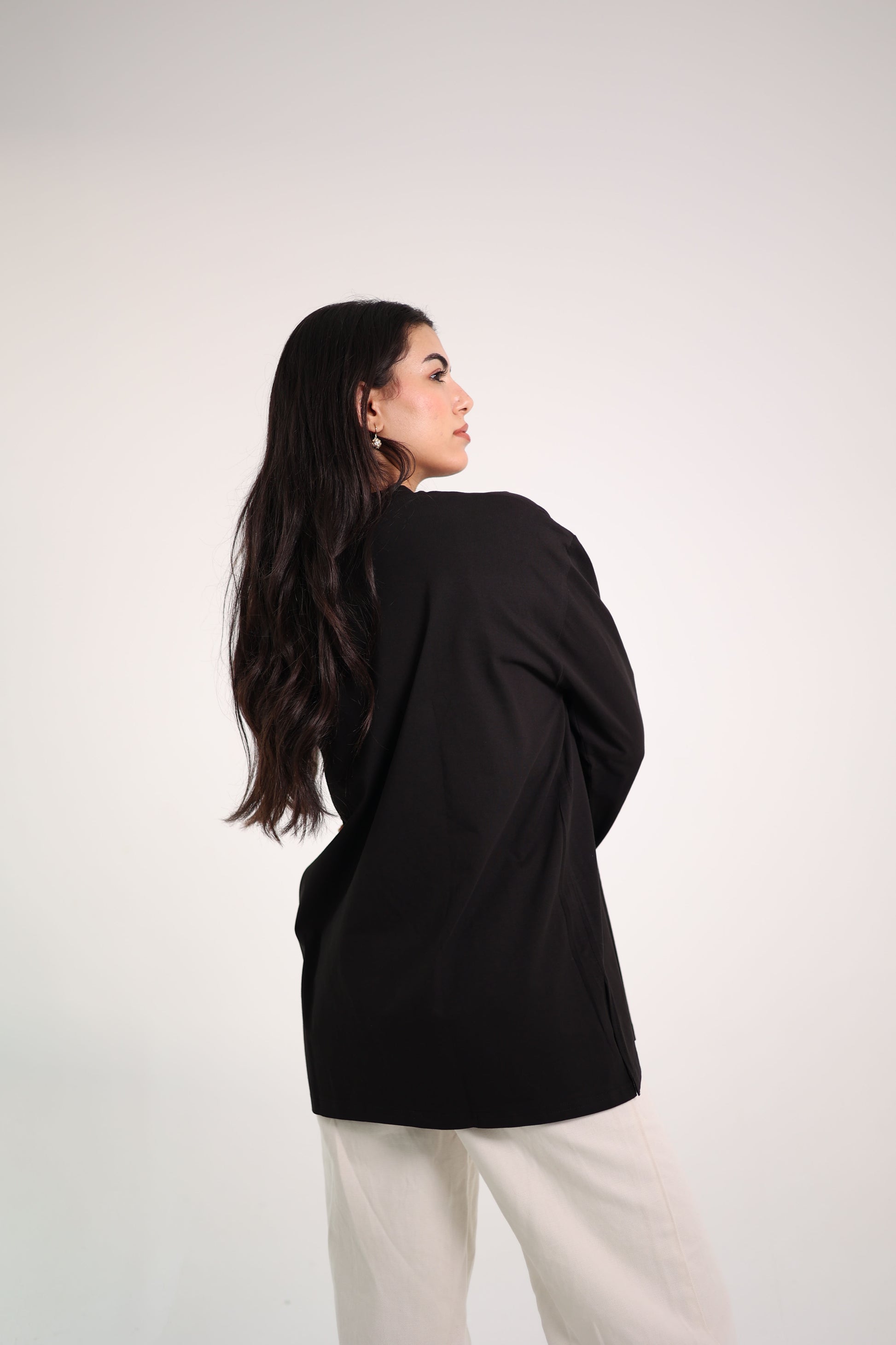 Printed Black long sleeves oversized T-shirt