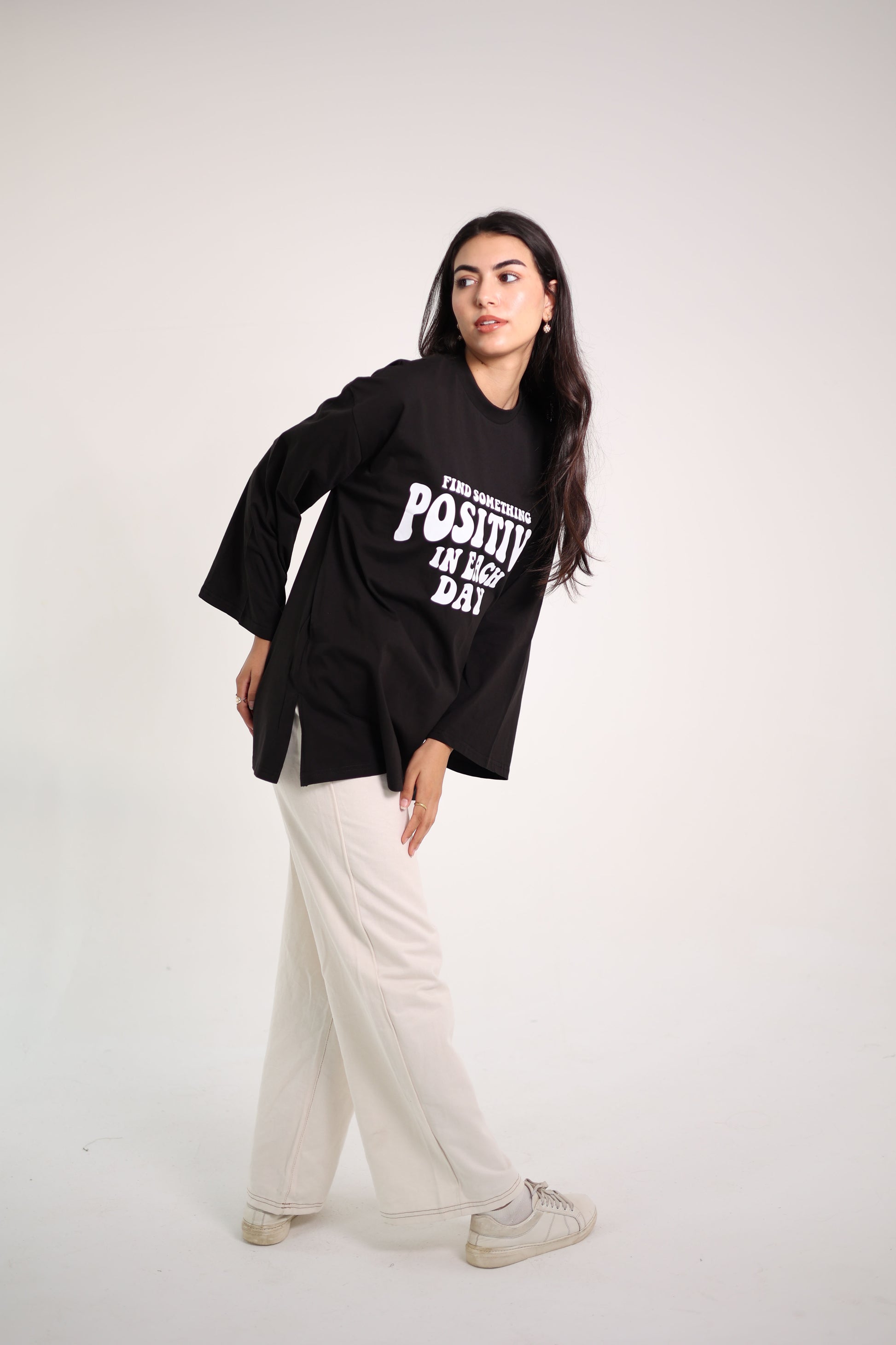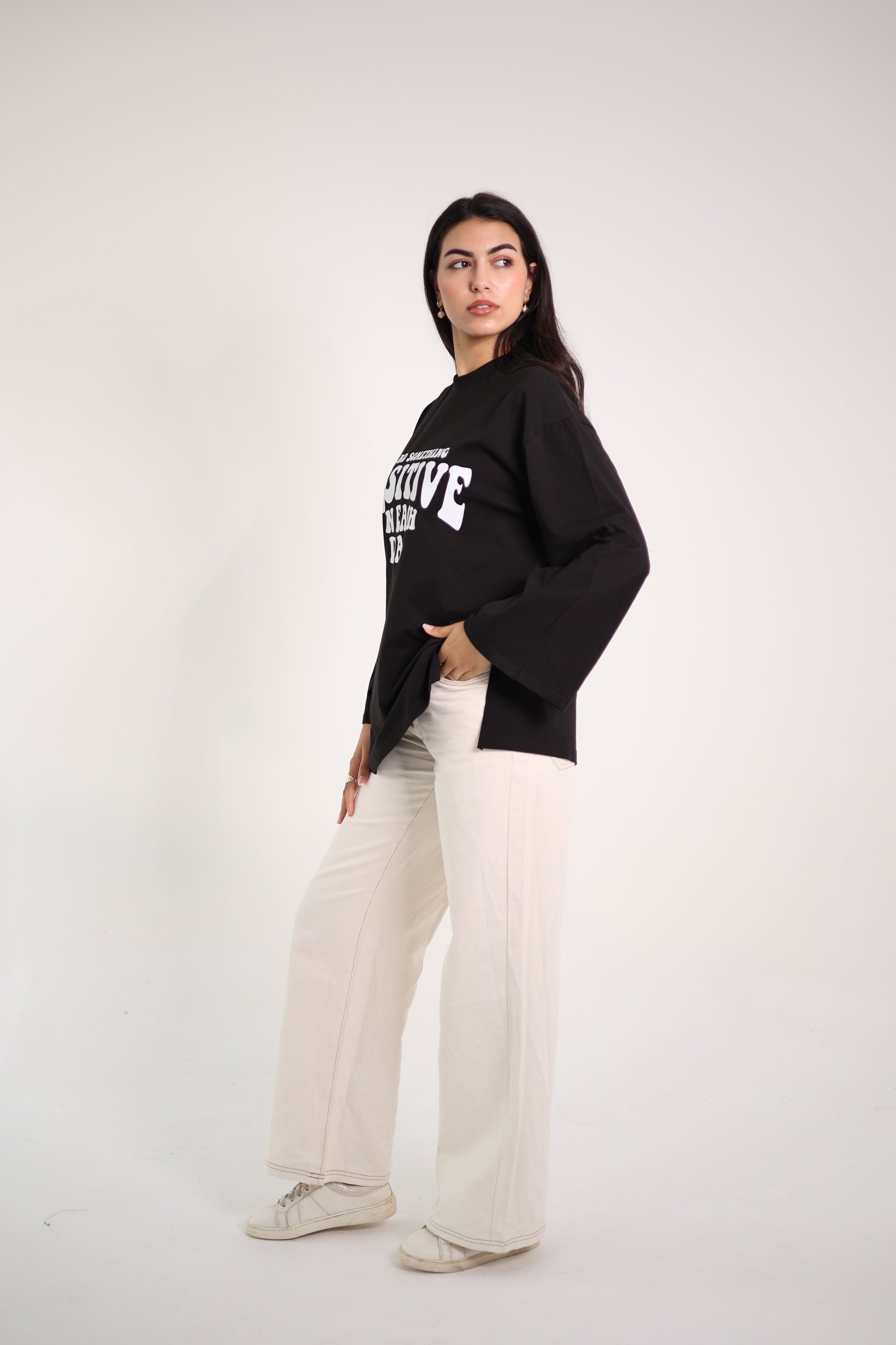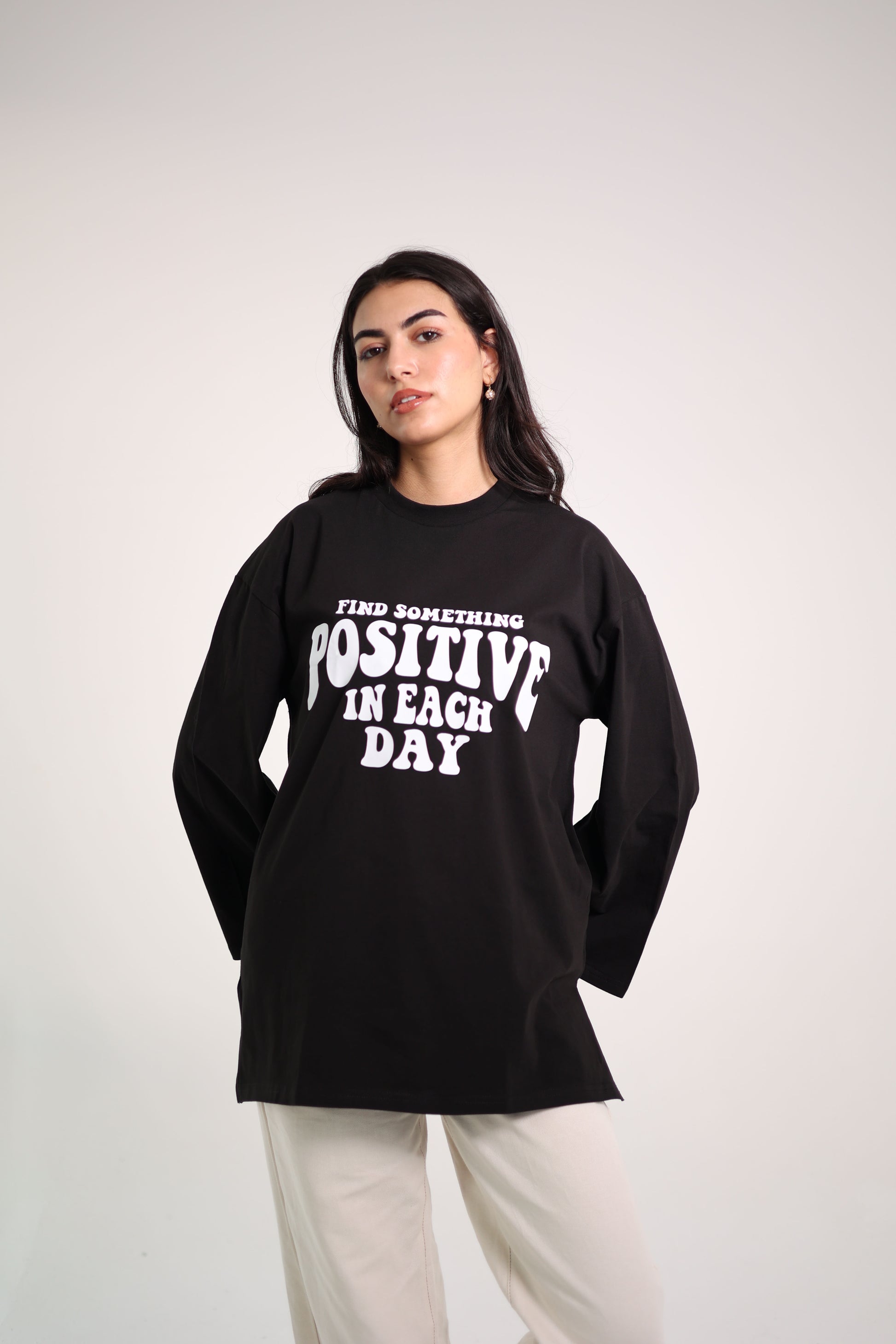 Printed Black long sleeves oversized T-shirt